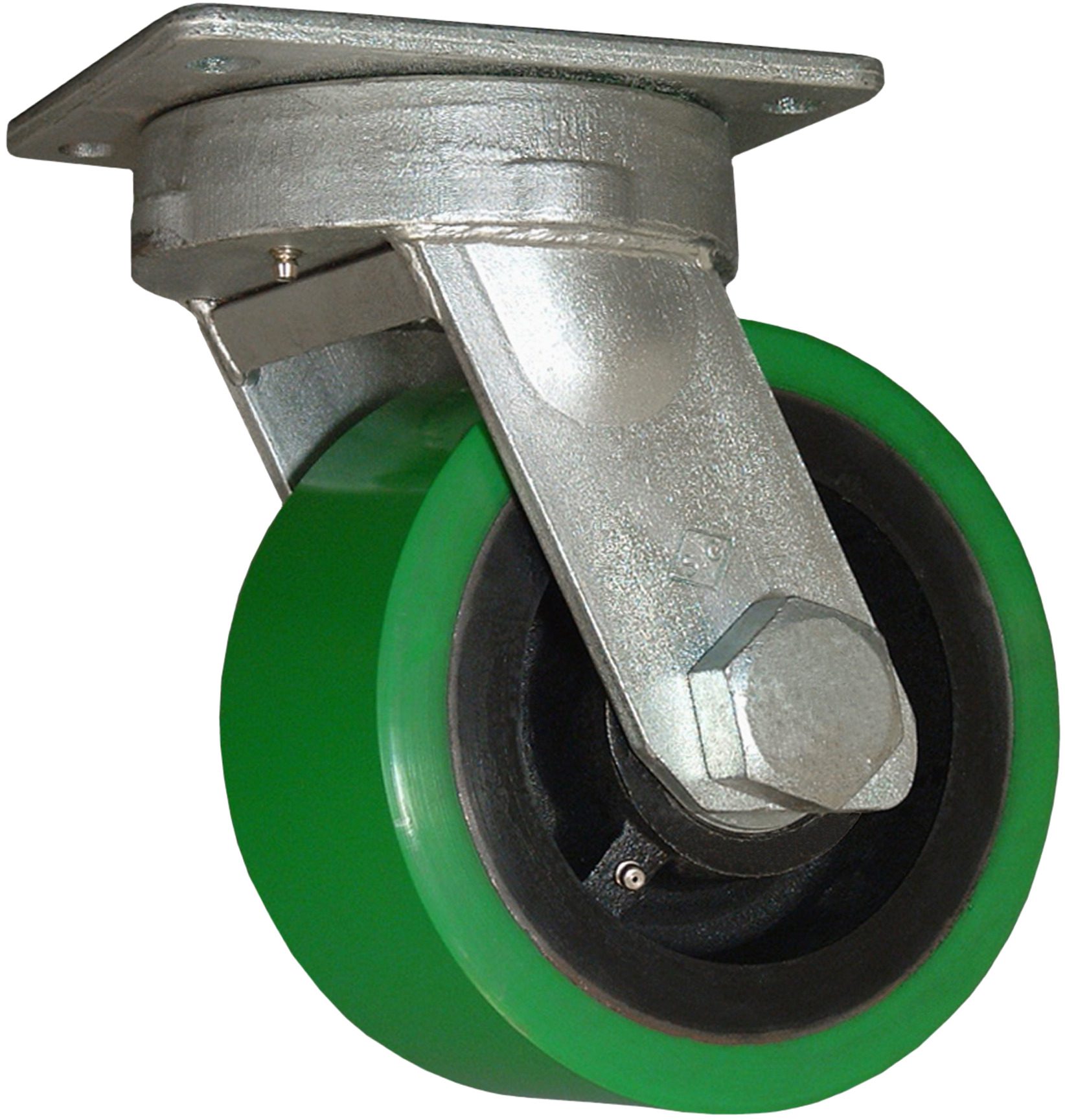 10″ x 3″ Heavy Duty Green Polyurethane on Iron – Model 100 Swivel Caster