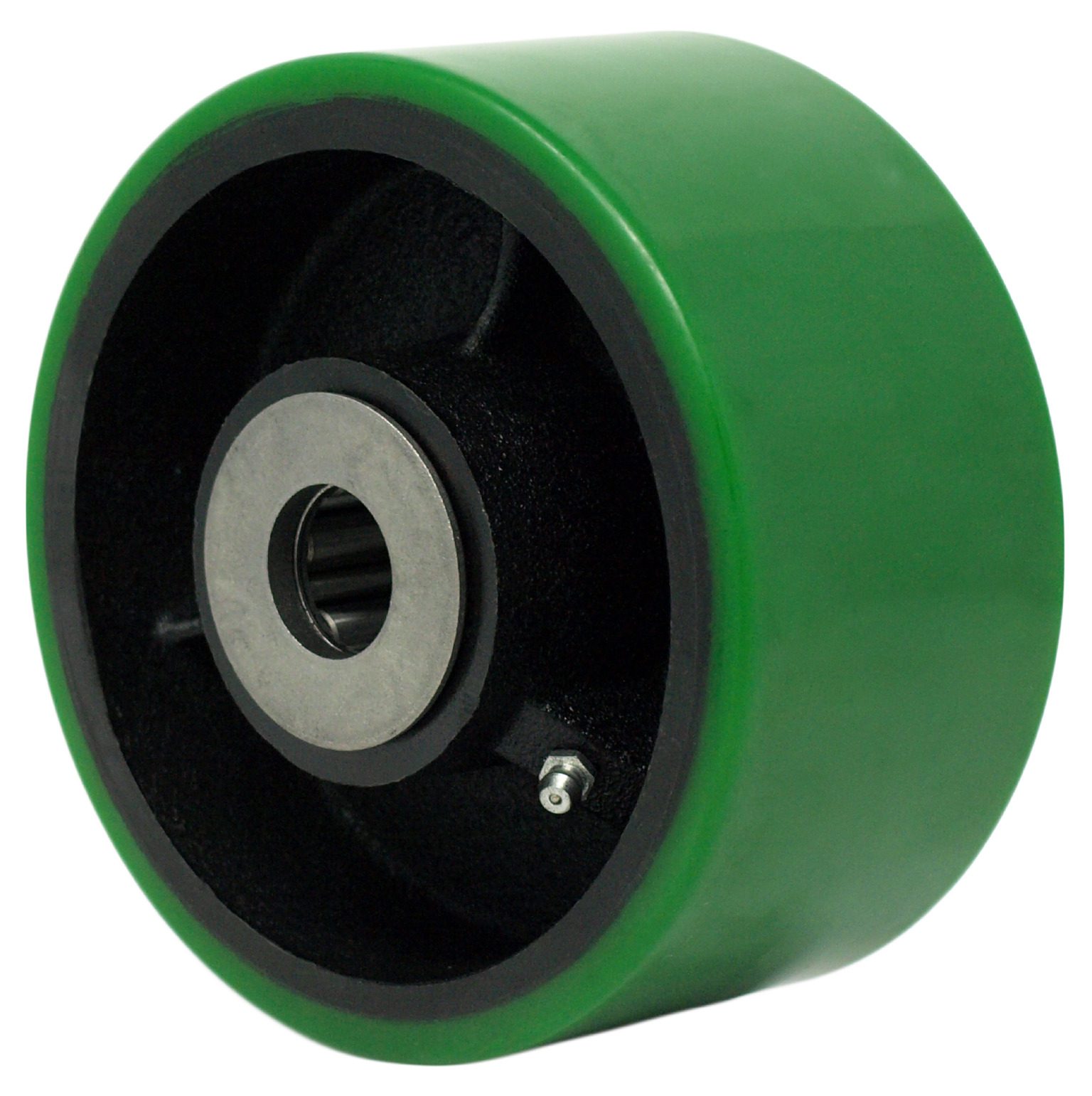 The Heavy Duty Plate Caster Model 50 with “PY” Polyurethane on Iron Wheel requires greasing the lubrication fittings on the raceway, wheel bearings, and axle regularly. The PY wheel’s 95A tread and chemical bond to the iron center ensure long life—don’t exceed 7,000 lbs per caster.