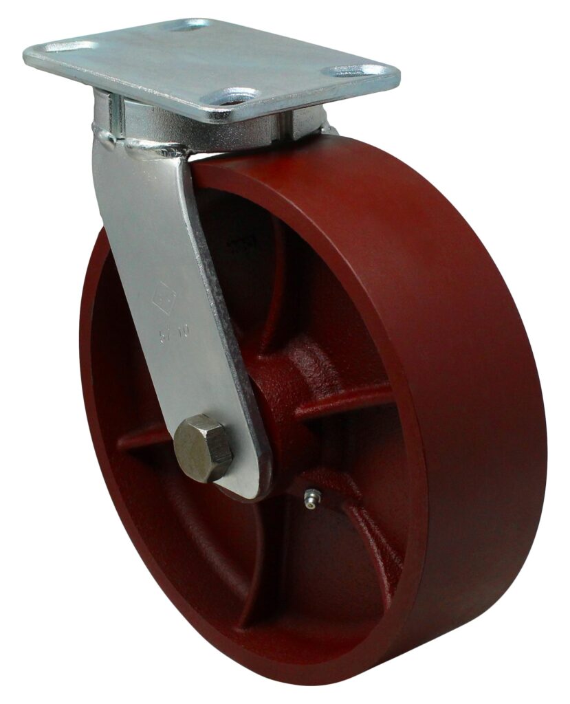 It’s a heavy duty plate caster built for the toughest jobs like moving heavy carts in steel mills power plants or mining operations. With a 3” swivel bearing and DS – Ductile Steel Wheel this kingpinless caster handles both manually moved and mechanically powered equipment in the most demanding industrial settings.
