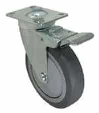The RF Soft Gray Rubber Wheel in the Zinc-Plated Total Locking Caster Model 3A is a great pick for light industrial casters. It features soft non-marking TPR rubber—gray injection molded thermoplastic rubber tires—mechanically bonded to a polyolefin center. The wheel is made for 3”, 4”, and 5” diameters (1.25” wide) and supports up to 300 lbs per wheel at room temperature on smooth floors in hospitals, pharmaceutical labs, food service, and institutional applications. This soft gray rubber caster wheel has a maintenance-free precision sealed ball bearing. It provides a softer ride than polyurethane, withstands exposure to many chemicals and solvents, absorbs shock, rolls over small objects, protects costly floor surfaces, and minimizes vibration. A total lock brake locks both the wheel and the swivel on a swivel caster at the same time. This makes it ideal for zinc-plated casters needing a quiet wheel for sensitive settings.