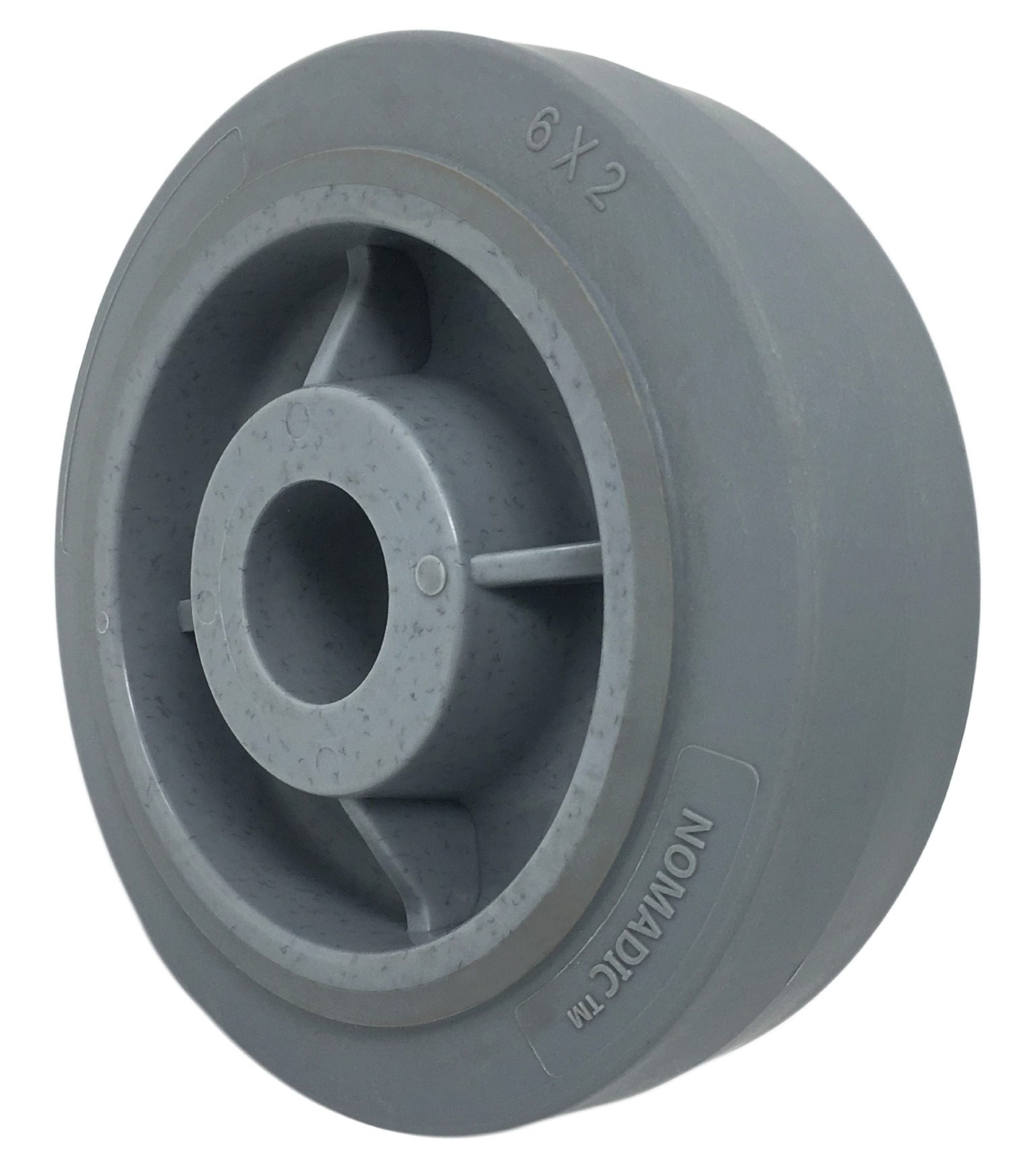 This caster has a broad selection of 2″ wide wheels that are NSF and ROHS compliant, including polyolefin (like PB), gray soft rubber, neoprene, polyurethane varieties, nylon, phenolic, high-temp options, V-groove, water-resistant polyurethane, and solid stainless steel. Diameters from 4″ to 8″.