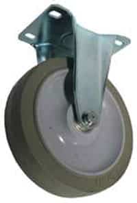 The RH High Capacity Soft Gray Rubber Wheel works best on dry factory floors. It excels with its cost-effective design, keeping smooth rolling and floor protection in hospital or lab setups, with soft non-marking TPR rubber offering better operating traits than any other wheel material. The metal caster assembly enhances durability with a dust cover shielding the swivel bearings from dirt, giving reliable performance. The total lock brake feature ensures safety by immobilizing both the wheel and swivel action when the metal pedal brake is engaged—reduce capacity ratings by 50% and pick the largest practical diameter for manual movement to lessen effort. The bonding agent holding the rubber tire to its polyolefin center can be affected by some chemicals, impact, overloading, or heat buildup, but this wheel and metal fork assembly shine in clean, dry environments, making these zinc-plated casters a smart choice for institutional applications needing a gentle, protective wheel.