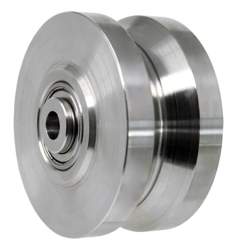 4″ Stainless Steel V Groove Wheel Special Order: Delivery 2-3 Days. Caster City offers a wide variety of v-groove caster wheels which are designed to roll on inverted angle iron track. When not operating on track, the considerable wheel tread on each side of the V-groove allows for use on smooth floors. Caster City provides a lubrication fitting on all v-groove industrial caster wheels. Caster City offers v-groove industrial caster wheels with either a roller bearing, sealed ball bearings. Forged steel wheels are offered in 2โ , 3โ and 4โ wide and we make this industrial caster wheel in diameters starting at 6โ and up. Temperature ranges for v-groove industrial caster wheels mirror that of typical steel wheels.