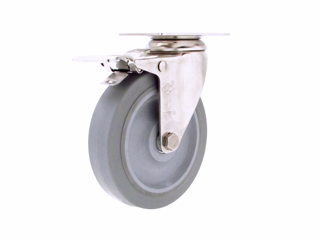 Model SS-3A – 304 Stainless Steel Total-Locking Caster with RH High Capacity Soft Gray Rubber Wheel FAQ