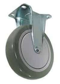 The total locking casters with Polyurethane on Polyolefin Caster Wheels roll easier than gray rubber on smooth floors, withstand exposure to many chemicals, and provide smooth rolling with the stamped steel assembly ensuring stability, making them a smart choice for sensitive applications without a big price tag.