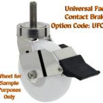 For secure positioning, the SS-G15 includes standard wheel brakes and swivel locks, with additional braking options such as the Top Lock Brake (TB) with a pedal on the side of the wheel and the Bolt-On Universal Face Contact Brake (UFCB). These features ensure stability for equipment like carts, tables, or workstations during cleaning, sterilization, or setup in hospitals or labs. The precision machined combination load and thrust bearing enhances smooth operation, making the SS-G15 a trusted choice for safety-focused environments. To select the appropriate configuration, customers should contact Caster City at sales@castercity.com or 800-501-3808 for recommendations, as real-world conditions may vary and capacity ratings alone are not sufficient for optimal performance.