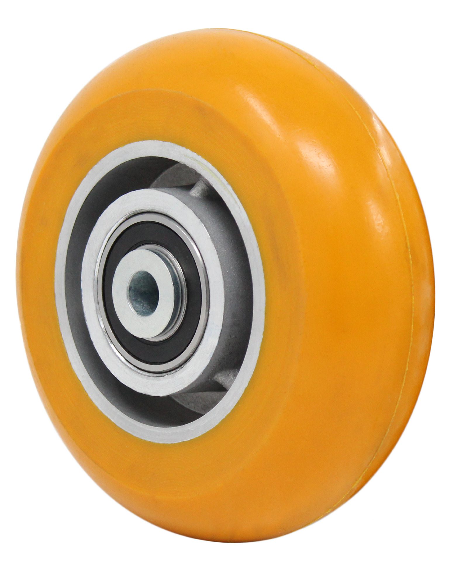 The cushion tread of the UXY caster wheel offers a quiet, resilient ride that actually helps to roll the load instead of resisting motion.  This caster wheel comes with an 80A (Shore Durometer) hardness tire, which makes it the quietest polyurethane wheel found in 2” wide.  It comes in 4”, 5” , 6” , and 8” diameters and is equipped with two large precision sealed ball bearings.    This wheel is ideal for going between inside and outside of your production facility and is excellent in a towed application.