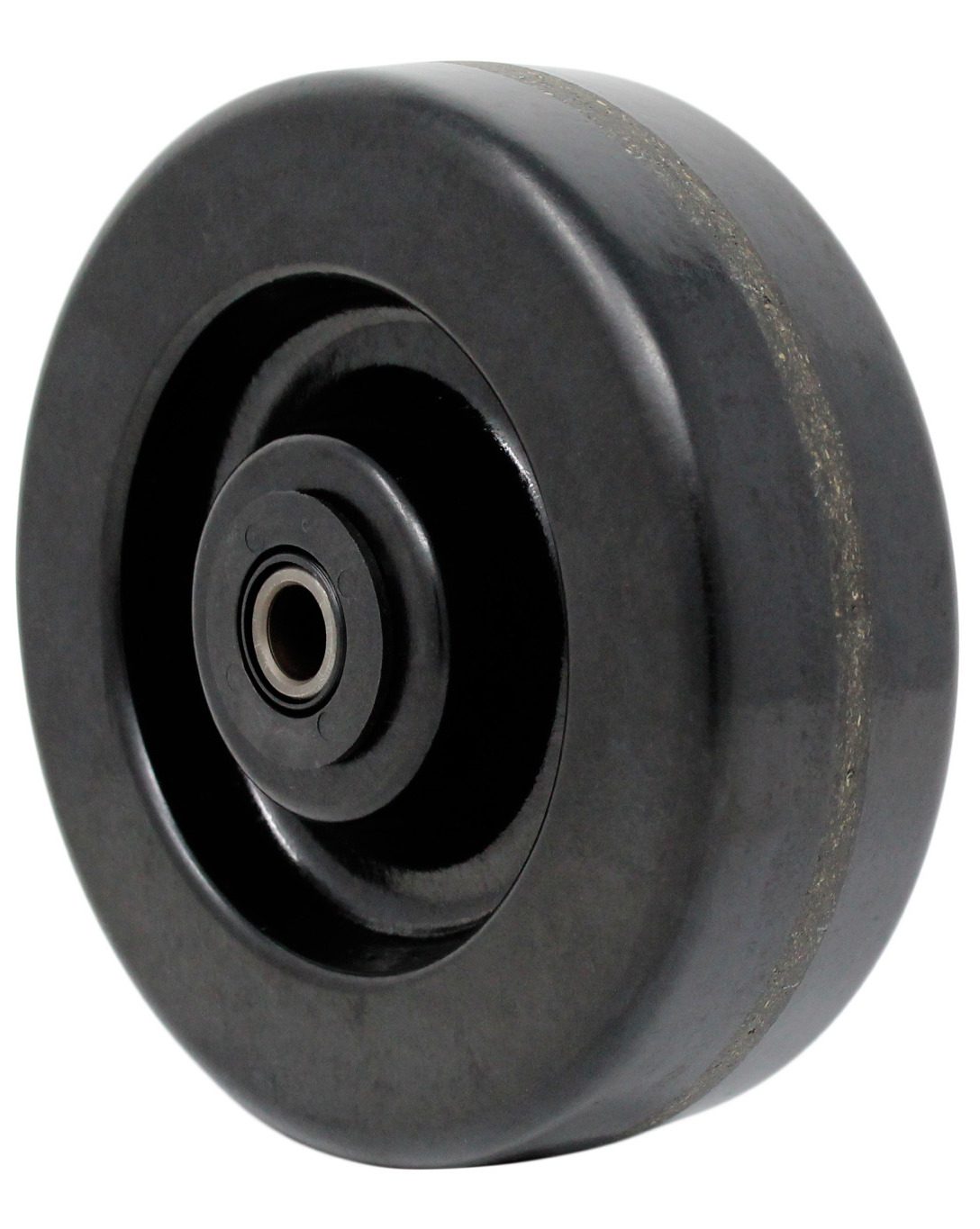 Our Phenolic Caster Wheels, made from macerated canvas mixed with phenolic resin and molded under high pressure and temperature are a cost-effective, hard-composition, non-marking solution ideal for supporting heavy stationary loads that move infrequently. With a hardness comparable to polished maple flooring and a Durometer of Shore D 90, these wheels are designed to handle large loads comparable to metal wheels without developing flat spots, even when parked for prolonged periods under load. Available in diameters from 3” to 18” and widths from 1-¼” to 4”, they come standard with roller bearings or optional precision sealed ball bearings, making them perfect for smooth concrete surfaces in industrial settings like warehouses or manufacturing facilities.