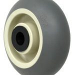 Forged stainless steel construction with 1/4” thick legs, welded inside and out. Axle is a 1/2” diameter hollow bolt with lock nut. Wheel treads vary by option, like rubber, polyurethane, polyolefin, nylon, or phenolic.