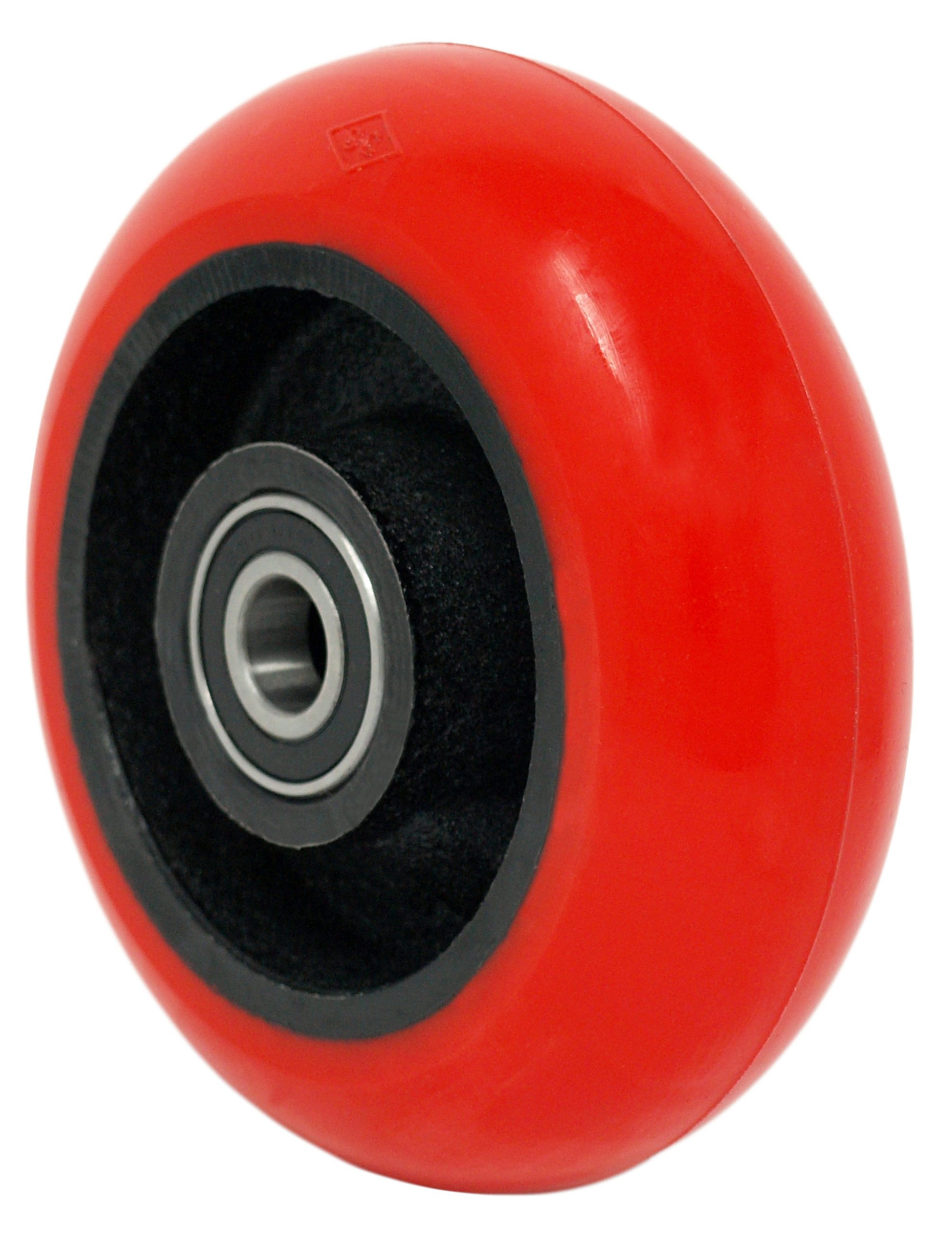 - Material: Red polyurethane crown tread bonded to an iron core.