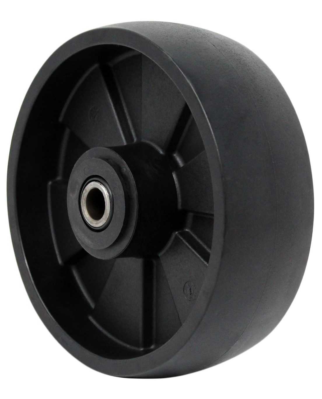 8″ High Capacity Black Nylon Wheel. Photo shown with 8″ wheel. This stainless steel rigid caster 9 is formed from 304 stainless stamped steel. The mounting plate and legs of the caster are ¼” thick 304 stainless steel. This caster is ROHS and NSF compliant. This stainless steel rigid caster uses a 1/2” diameter axle. Rigid casters are most commonly selected when price is a factor, or if you need to travel in a straight line over long distances. If you are going to put more than 1200 lbs of weight on a model 9 rigid caster of this size, please consult with us.