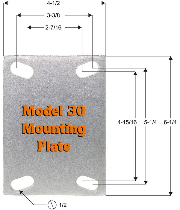 *This Plate Caster Model 30 contains the Ductile Steel Wheel. The caster shown in photo with 8″ x 3″ wheel.
