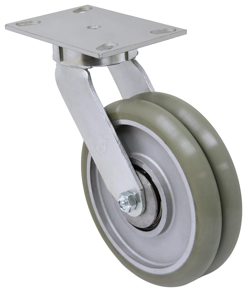 AGV Kingpinless Swivel Casters with Extended Long Lead from Caster City unleashes powerhouse performance, driving 1,500 lbs. with dual 8″ gray polyurethane wheels built for aerospace and automotive production. The hard 65D Shore hardness crown tread slashes rolling resistance for smooth towline runs, while high efficiency precision sealed ball bearings and a heavy-duty kingpinless swivel deliver agile, high-speed handling in AGV equipment. Featuring a corrosion-resistant yellow zinc finish, tapered roller bearings for axial thrust, and thrust ball bearings for heavy-load stability, this swivel caster cuts battery drain across manufacturing floors and logistics hubs. Trusted in aerospace and automotive production, the AGV-4X-DW8X-GR-SWIVEL sets the bar for precision and durability.