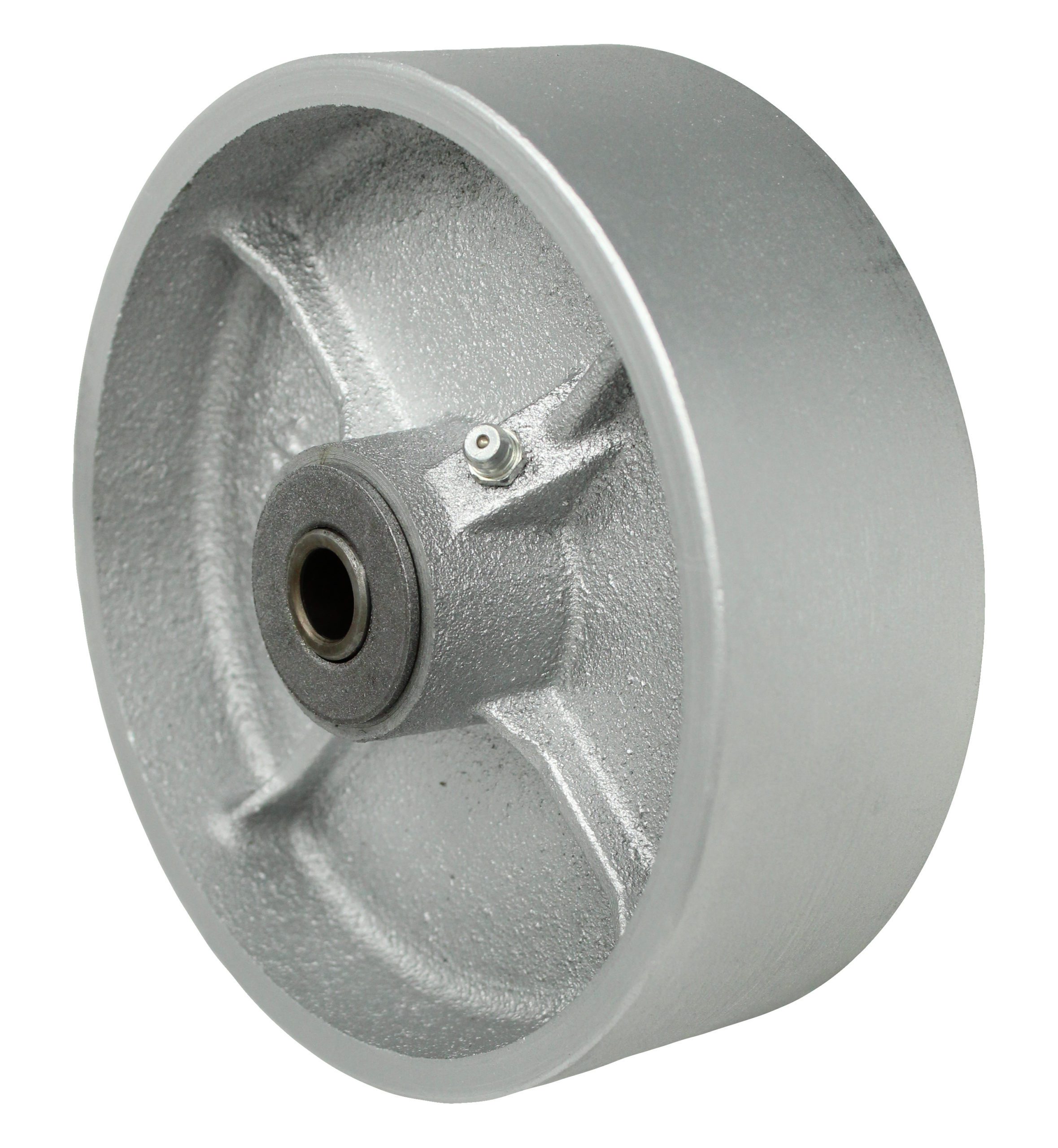 While Gray Iron Caster Wheels provide an economical alternative, they are not recommended for severe or abusive applications due to their lower strength compared to steel wheels. For only a modest increase in cost, we recommend our steel wheels, which offer nearly twice the strength and durability. Gray Iron wheels will damage most factory floors under heavy loads, so they are typically used on steel plating, in metal channels, or as V-grooved wheels rolling on inverted angle iron tracks to protect costly flooring. These wheels are best suited for environments where budget constraints outweigh the need for enhanced performance or floor preservation.