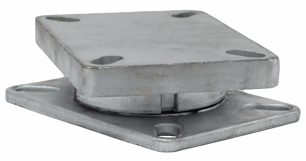 The kingpinless swivel bearing distributes the load across a larger surface area, allowing it to support over twice the real-world weight of a traditional kingpin caster with the same-sized metal bracket, yoke, or fork.