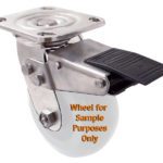 Yes, the Model 9 total lock stainless caster offers a TL – Total Locking Brake option, with the pedal behind the wheel to lock both swivel and wheel rotation. It’s not for holding on inclines, but great for securing in wet or corrosive setups.