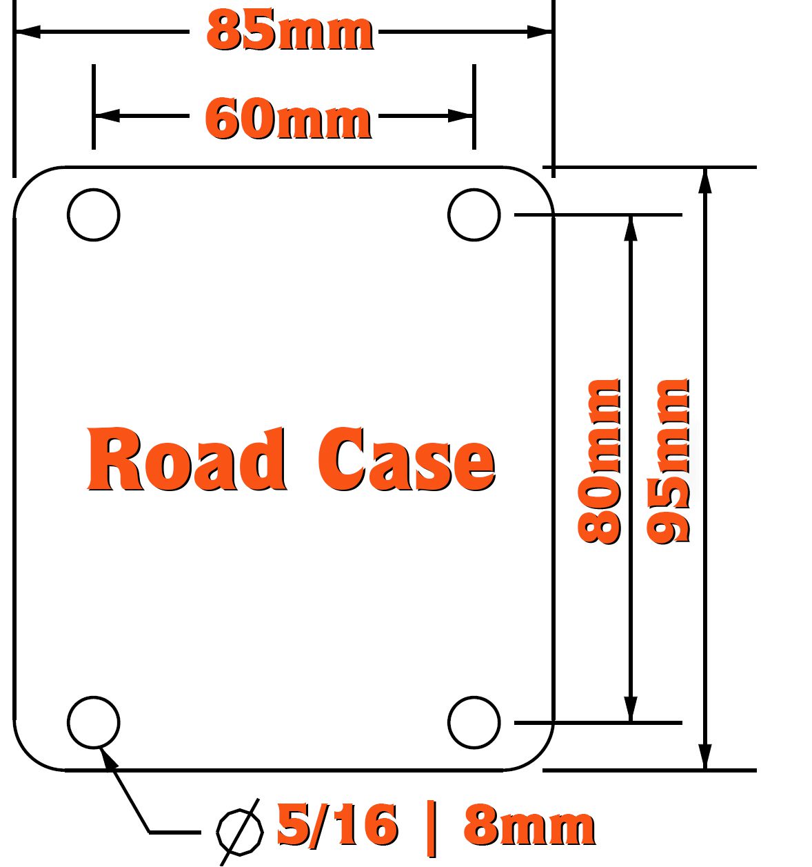 Road Case Casters with 4″ Rubber Wheel – Mounting Plate 85 mm x 104 mm