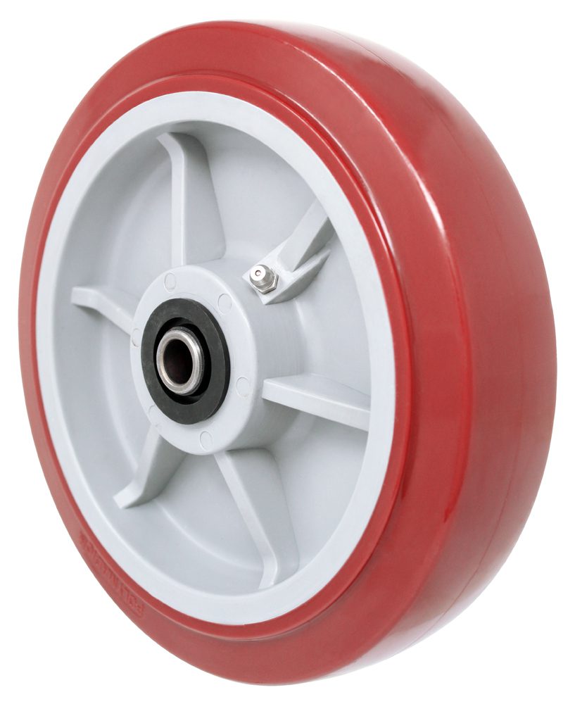 Photo shown is an 8 inch diameter premium maroon polyurethane wheel
